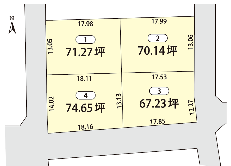 土地面積 | (公簿)222.28m2/67.23坪 ~246.79m2/74.65坪 |