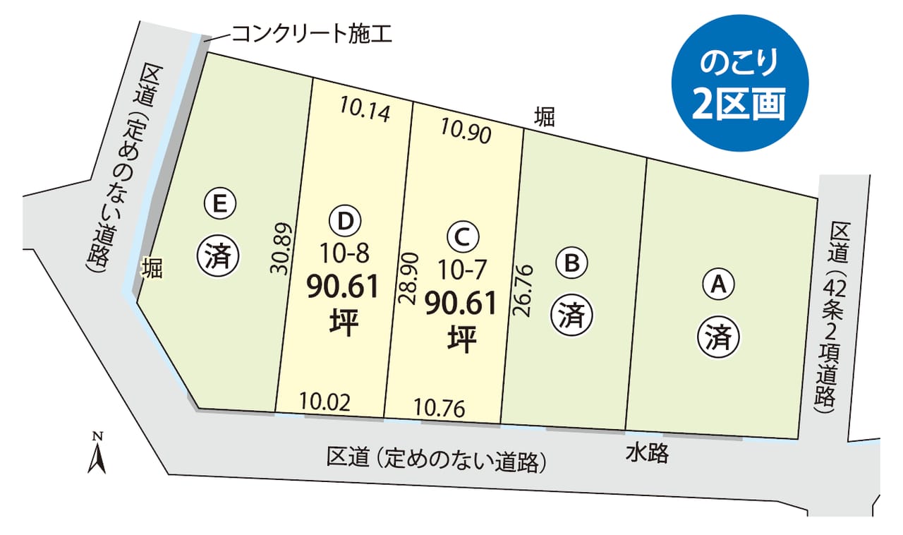 | 土地面積 | (公簿)299.55m2/90.61坪 | 私道負担面積 | |
