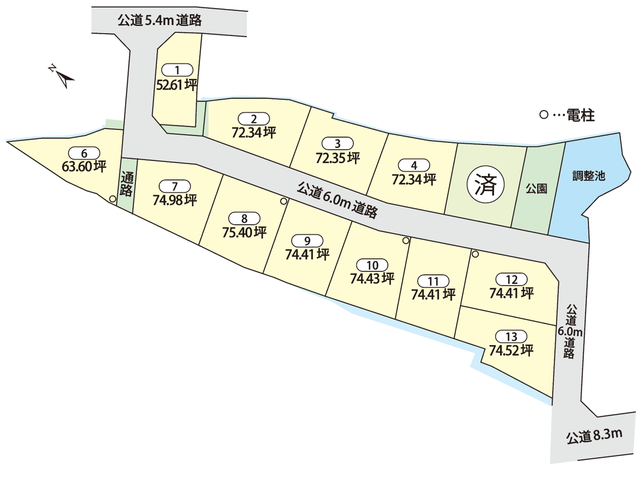 | 土地面積 | (公簿)173.92m2/52.61坪 ~249.27m2/75.4坪 |