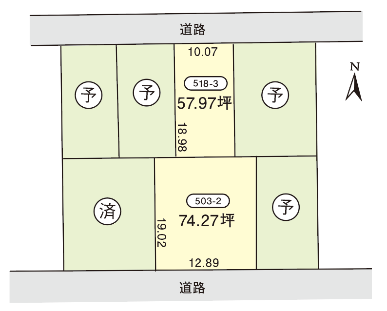 土地面積 | (公簿)191.65m2/57.97坪 ~245.54m2/74.27坪 |