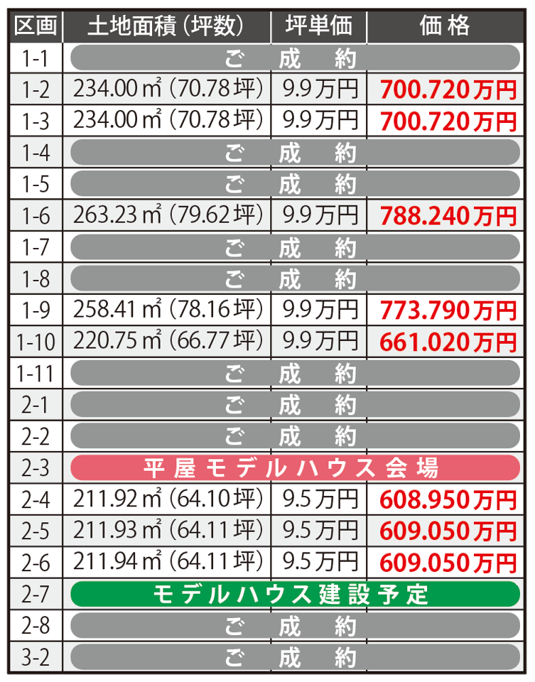 | 土地面積 | (公簿)211.92m2/64.1坪 ~263.23m2/79.62坪 |