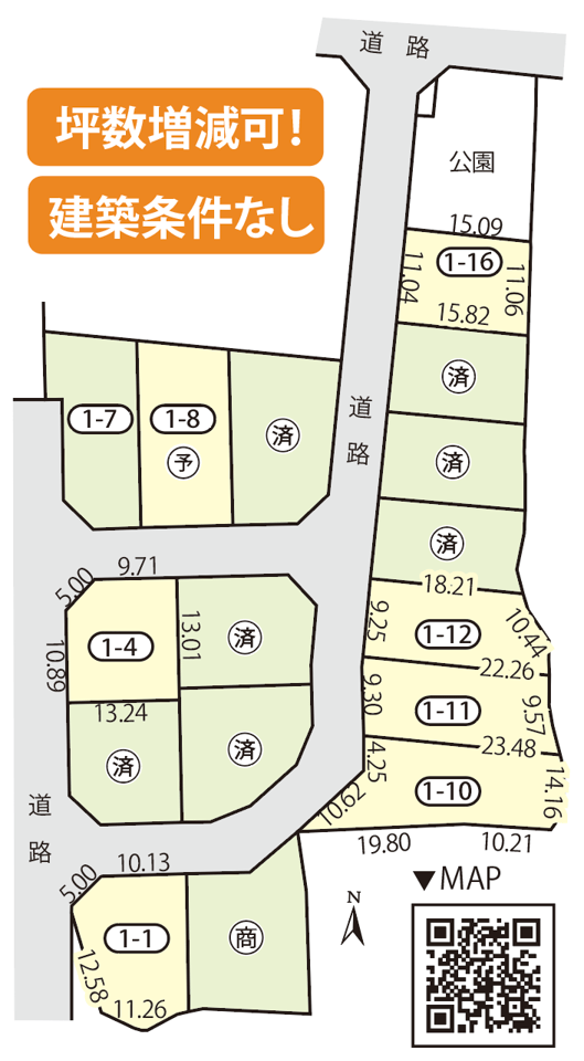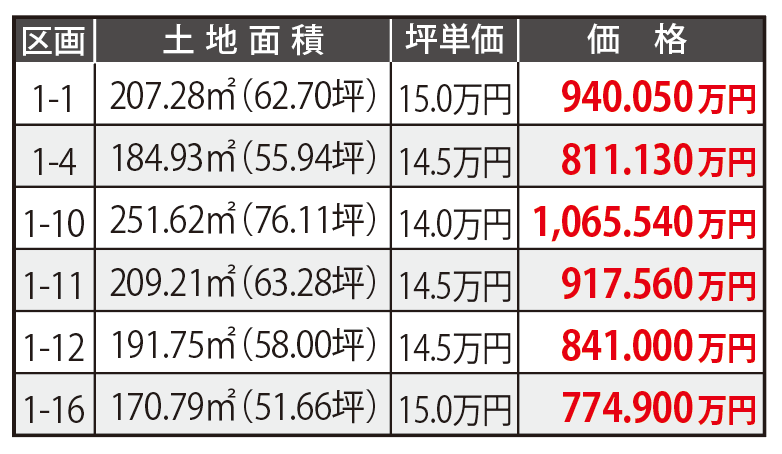 | 土地面積 | (公簿)170.55m2/51.59坪 ~246.09m2/74.44坪 |