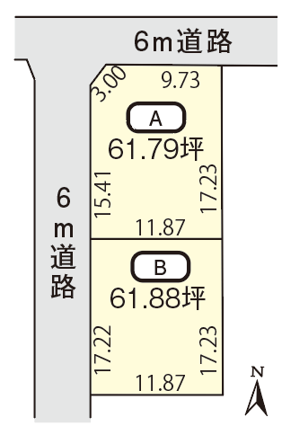 土地面積 | (公簿)204.27m2/61.79坪 ~204.56m2/61.87坪 |