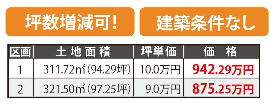 備考 | 上下水道負担金込 坪数増減可! 建築条件無し! ゆとりある敷地! |